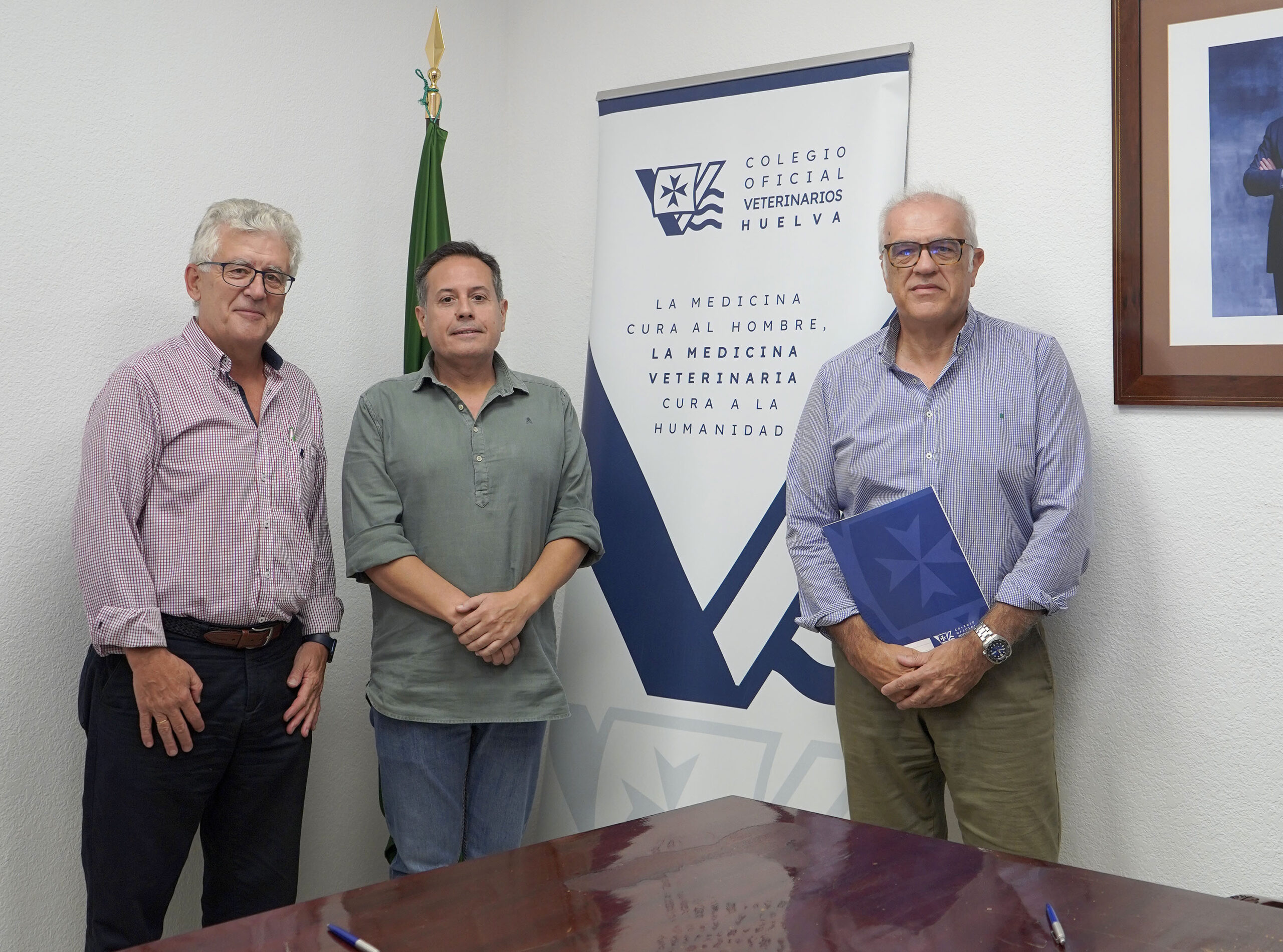 De izquierda a derecha: El vicepresidente del Colvet Huelva, José Luis Carrillo; el pdte. de BARECA, Rafael Acevedo y el pdte. del Colvet, Fidel Astudillo.